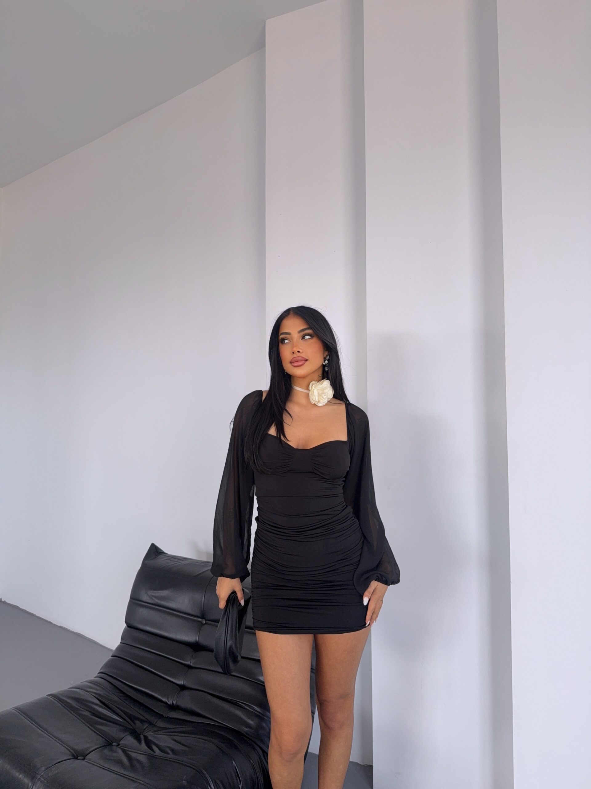 Tül Kollu Mini Elbise